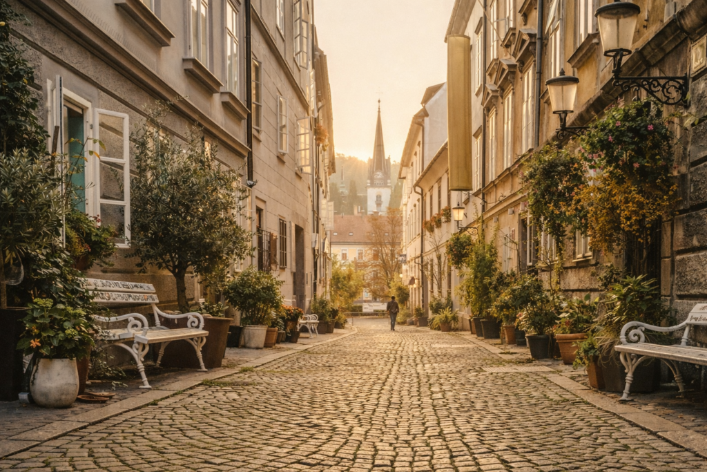 Yours begins on Križevniška Street — Ljubljana’s quiet, historic heart.